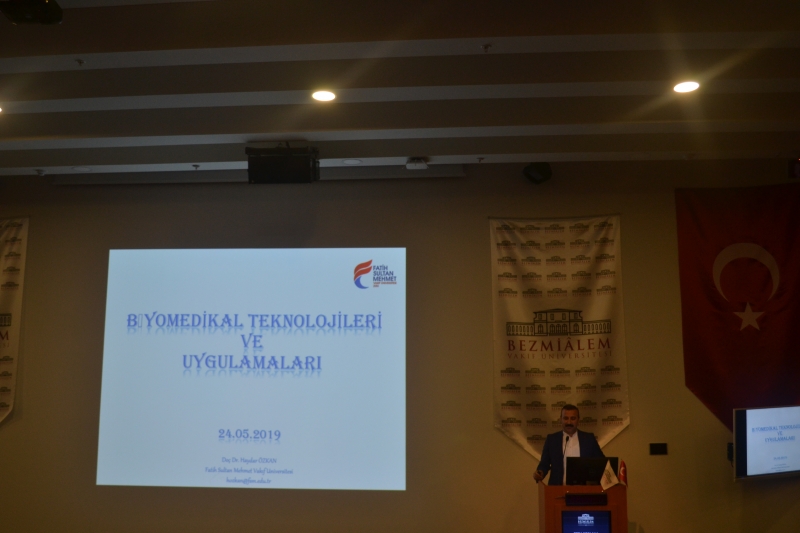 Üniversitemiz Mühendislik Fakültesi, Biyomedikal Mühendisliği Bölümünden, Doç. Dr. Haydar ÖZKAN 24.05.2019 Cuma saat 14:30’da Bezmialem Vakıf Üniversitesi Konferans salonunda, Tıp Fakültesi ve Sağlık Bilimleri Fakültesi öğrencilerine yönelik, “Biyomedikal Teknolojileri ve Uygulamaları” isimli konuşma gerçekleştirmiştir.