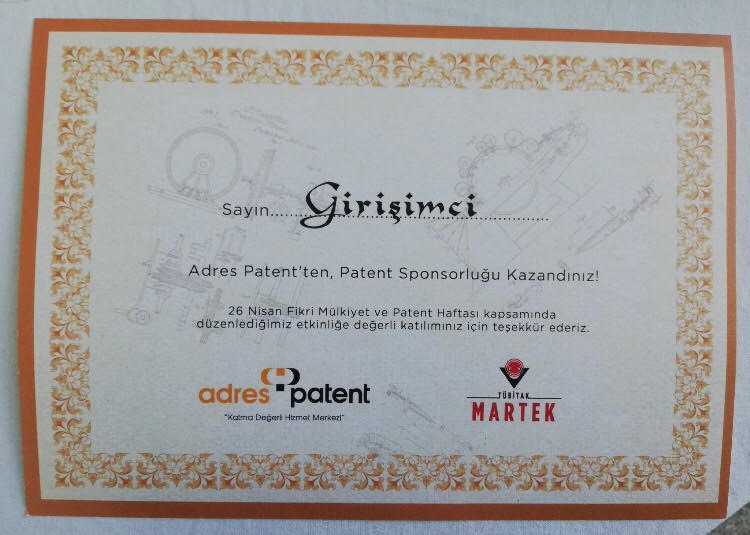 Dr. Öğr. Üyesi Haydar ÖZKAN Patent sponsorluğu sertifikası aldı