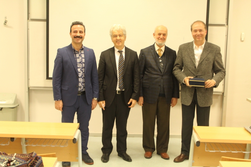 Seminerimiz, öğrencilerimizin sorularının cevaplanması sonrasında Mühendislik Fakültesi Dekanı Prof. Dr. Fevzi Yılmaz, Biyomedikal Mühendisliği Bölüm Başkanı Prof. Dr. Bahattin Karagözoğlu ve Bölüm Başkan Yardımcısı Dr. Öğr. Üyesi Haydar Özkan’ın konuşmacımıza hediye takdimiyle sona erdi.