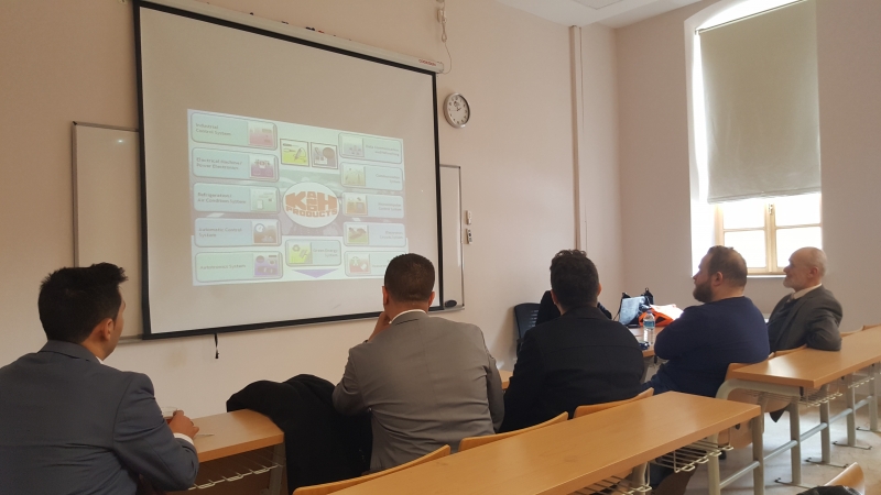 Ziyaret sırasında KandH firması tarafından yeni nesil eğitim araçlarının tanıtımı üzerine bir sunum yapılmıştır. Mühendislik eğitiminde teorik bilginin yanı sıra uygulamalı eğitimin son derece önemli olduğuna inanan bölümümüz, son teknoloji eğitim materyallerini yakından takip etmekte ve öğrencilerimizin piyasa koşullarına ve trendlerine vâkıf olması istenmektedir.